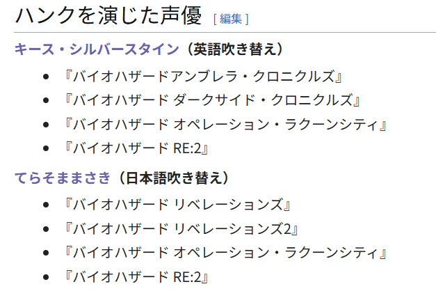 この方は、バイオハザード・リベレーションズ(2012)やバイオハザード RE:2(2016)で、「ハンク」役を担当された声優さん。