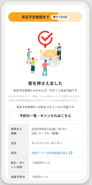 また、予約すると、画面に10分以内のタイムリミットが表示されるため、すみやかな移動が求められます。