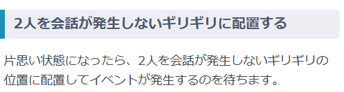 - 2人を会話が発生しないギリギリの距離に置く(何も起こらなければ再配置)
